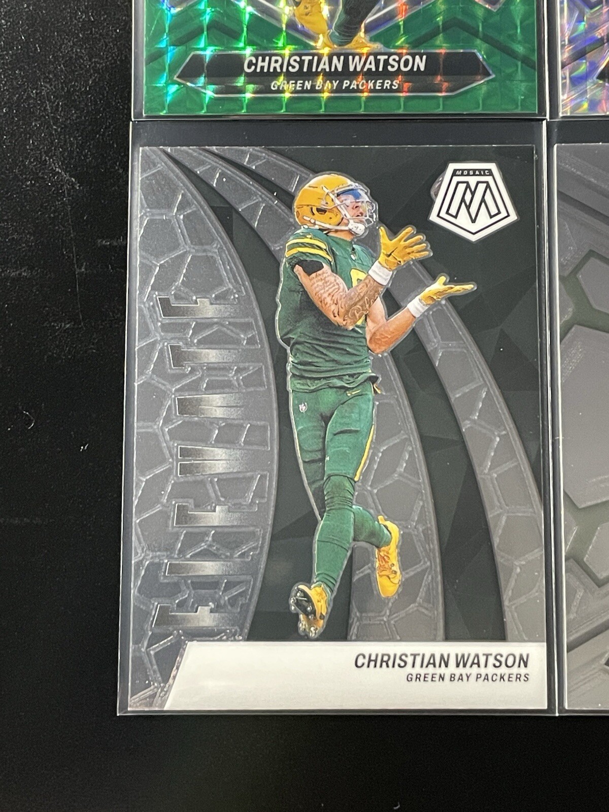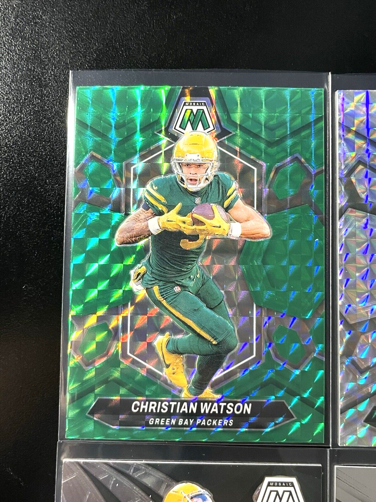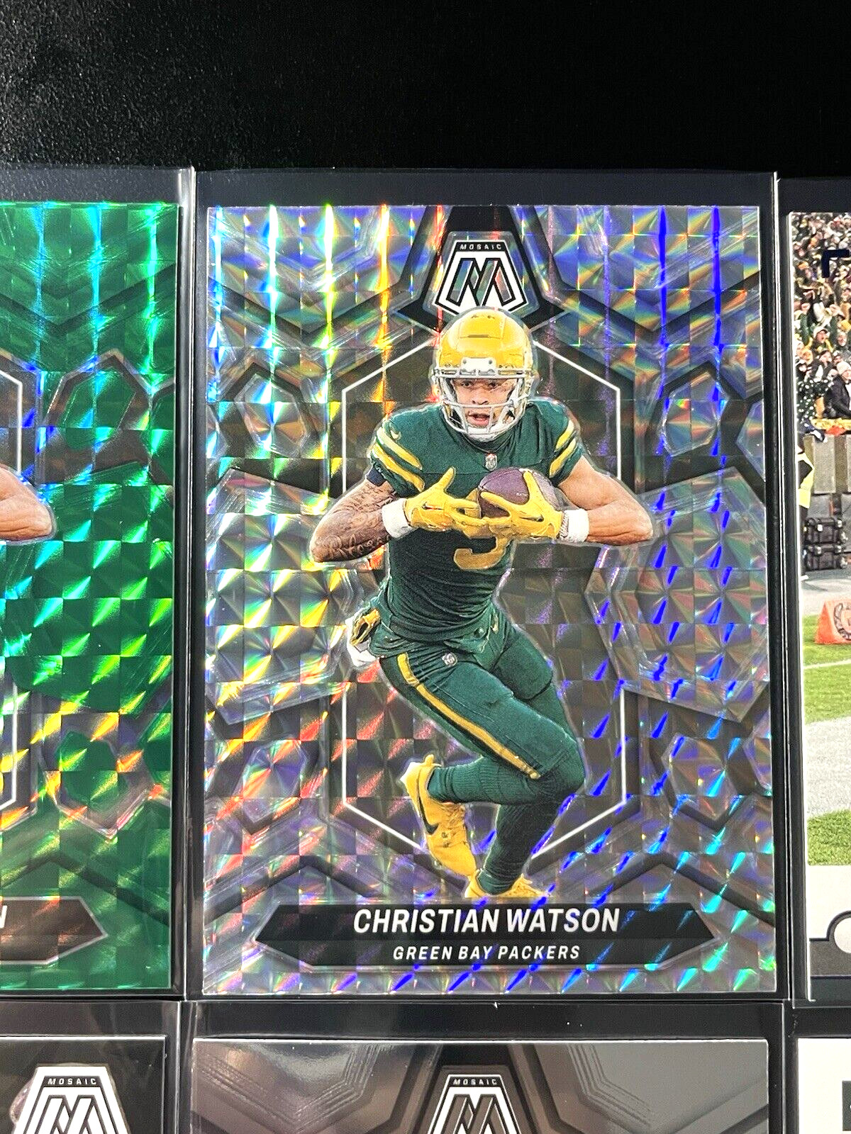 This lot features Christian Watson 2024 Panini Mosaic Green Prizm rookie cards, with 8 cards included. It’s a practical option for Green Bay Packers collectors and anyone building a Mosaic rookie collection. Condition is not specified in the listing, so check the listing for details. Free shipping is included, which can make this an easy add-on for your collection or a low-cost way to pick up multiple cards at once. For any details not shown (such as exact card numbers, centering, or surface condition), check the listing for details.